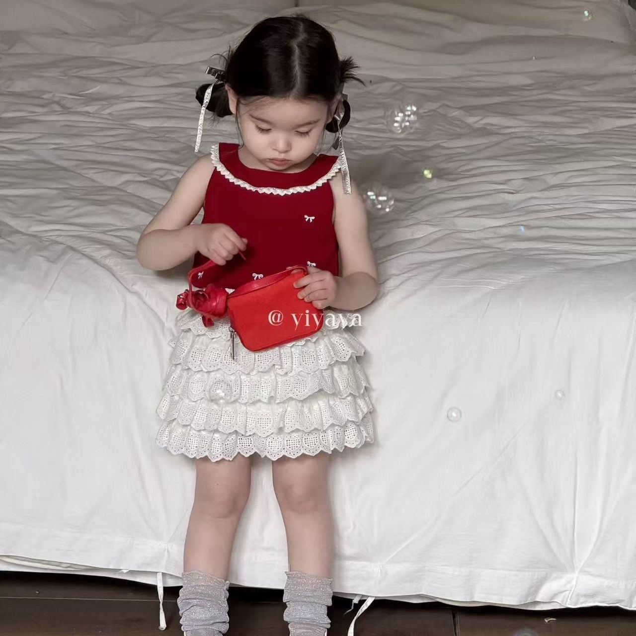 - [수입] 레드체크가방원피스세트 (바로배송)