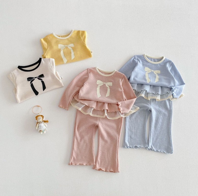 [수입]BIG리본치마바지셋